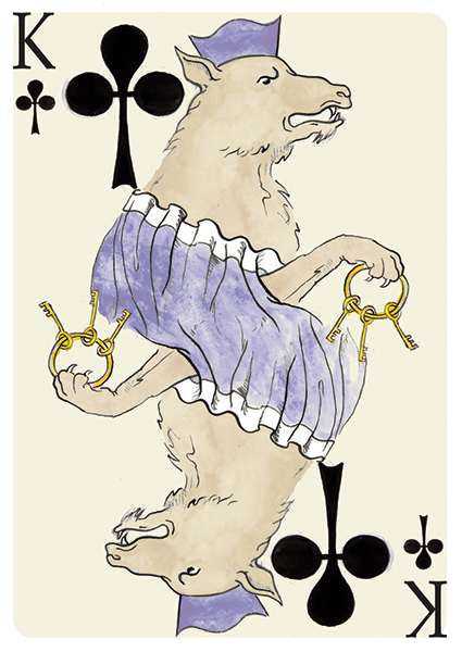 The imagery I used directly referenced imagery in the songs and poems (two-headed dogs, goats, the orange monkey, money, birds, keys and begging bowls). But also, the aim was to make the project consistent with and part of the marching band aesthetic of the stage show: drawing on old collective visual traditions and symbolic systems including drum and tambourine painting, playing cards, and heraldry. I also drew on accidental and unconscious symbolism, using shadows and rorschach blots, for example.